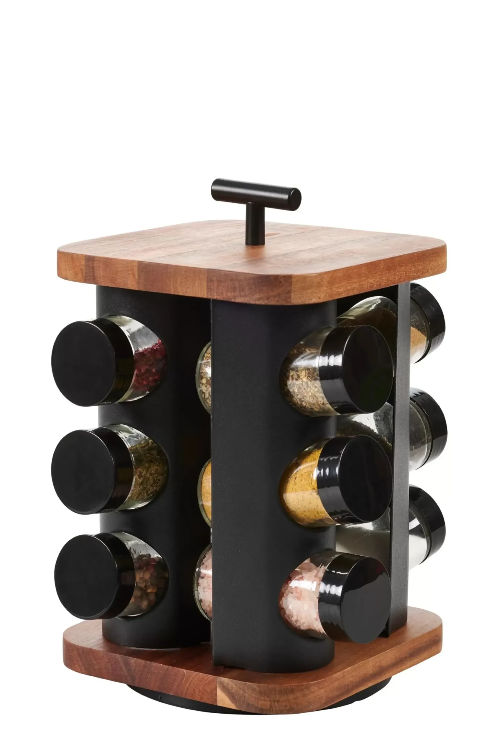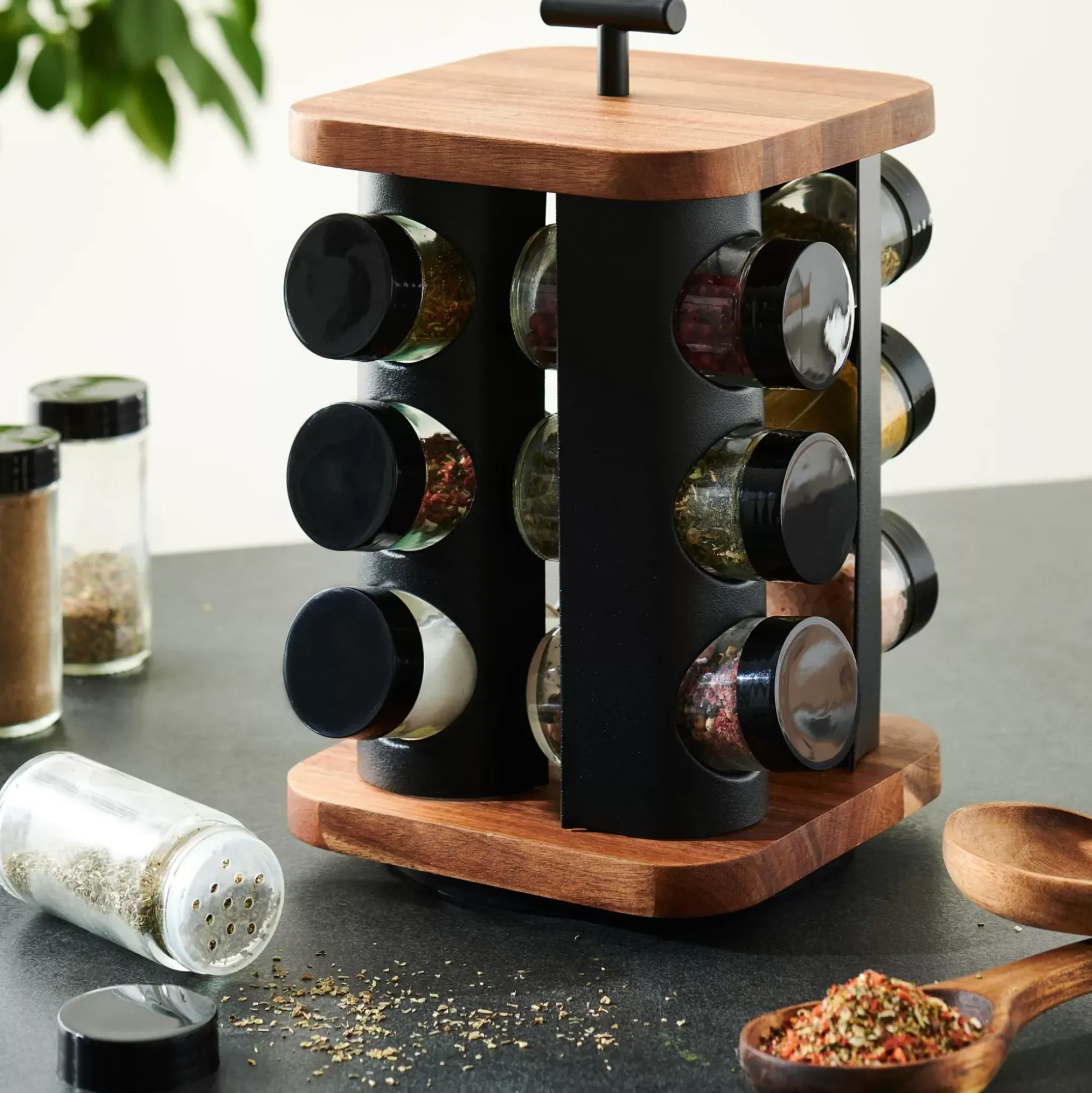 CASA Acacia Lux Carrusel De Hierbas 12 Botes Rotacion De 360° Negro, Natural Fashion
