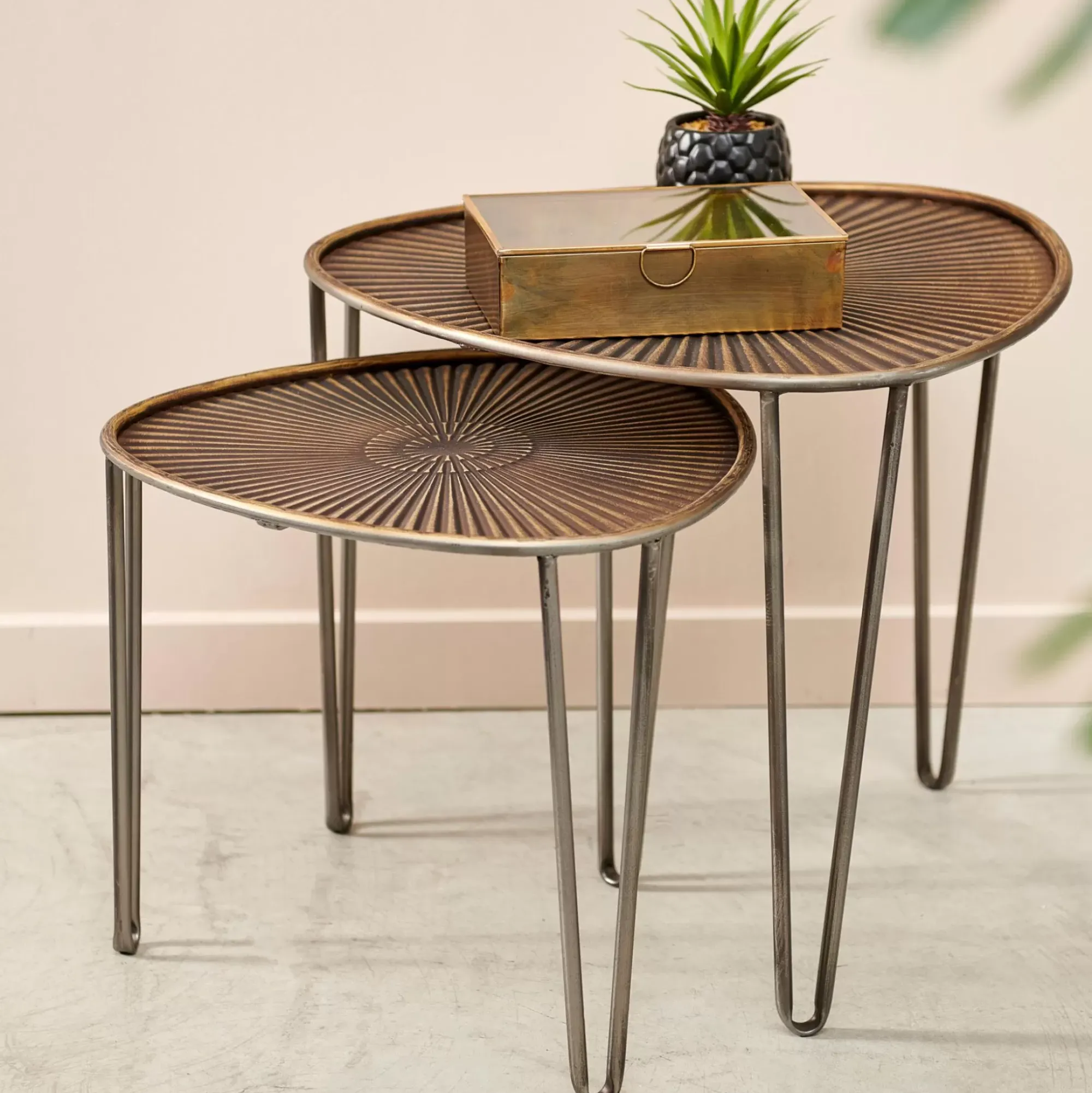 OVO Mesas auxiliares juego de 2 38X38X35CM/46.5X46.5X41CM plateado, cobrizo